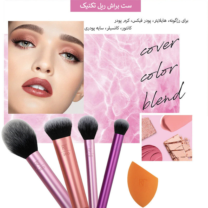 ست براش ریل تکنیک دارای 4 عدد براش با کیفیت و کاربردی و یک پد اسفنجی رنگی است.