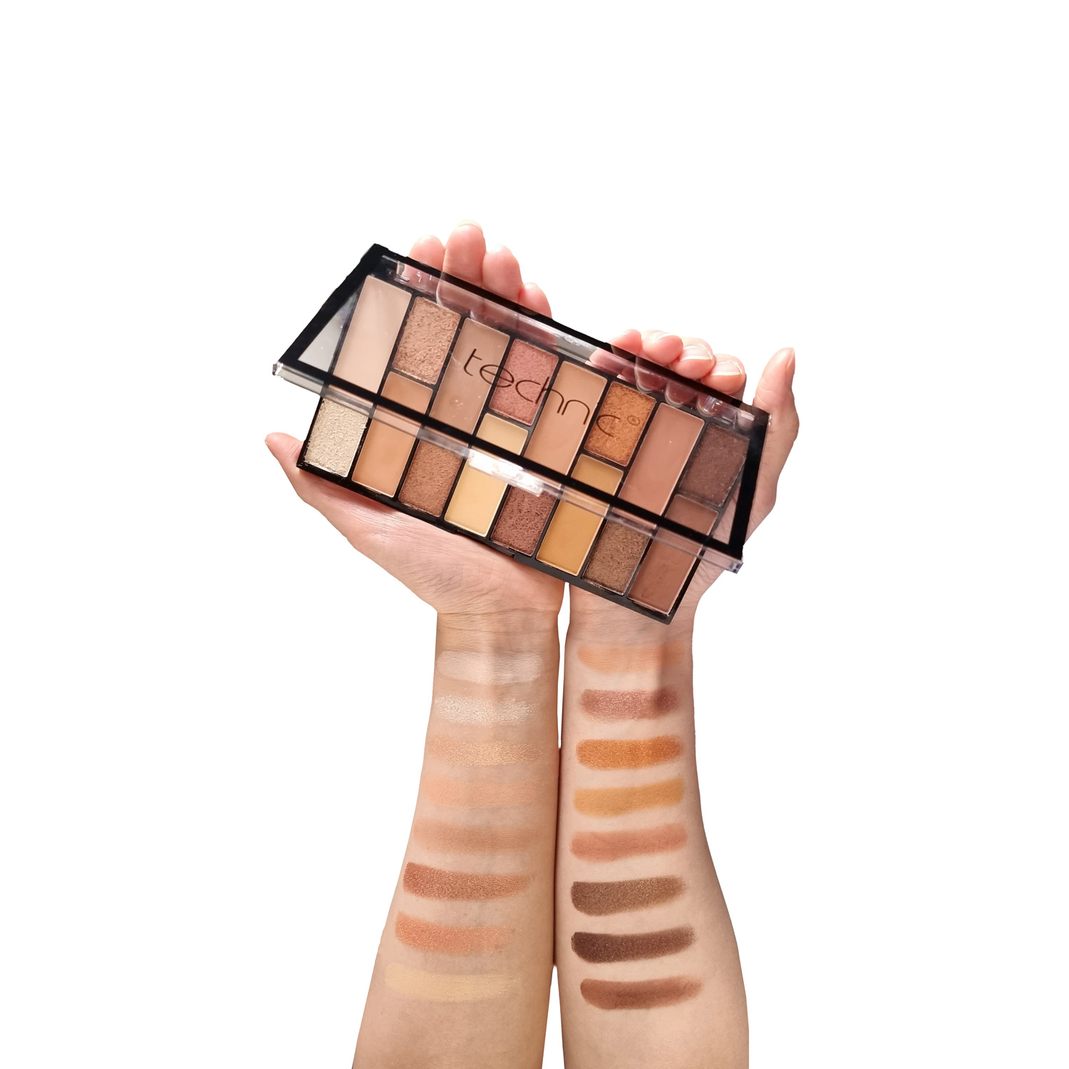 پالت سایه تکنیک Exposed یک پالت کامل است که دارای 8 رنگ مات و 8 رنگ شاین دارد زیباست. رنگ های این پالت دارای رنگ های نود تا پر رنگ از تناژهای کرم، قهوه ای، آجری دارد که بسیار پر کاربرد است. به راحتی می توان رنگ های این پالت را با هم ترکیب کرد و از ترکیب انها یک سایه چشم زیبا و چشم نواز را طراحی کرد.