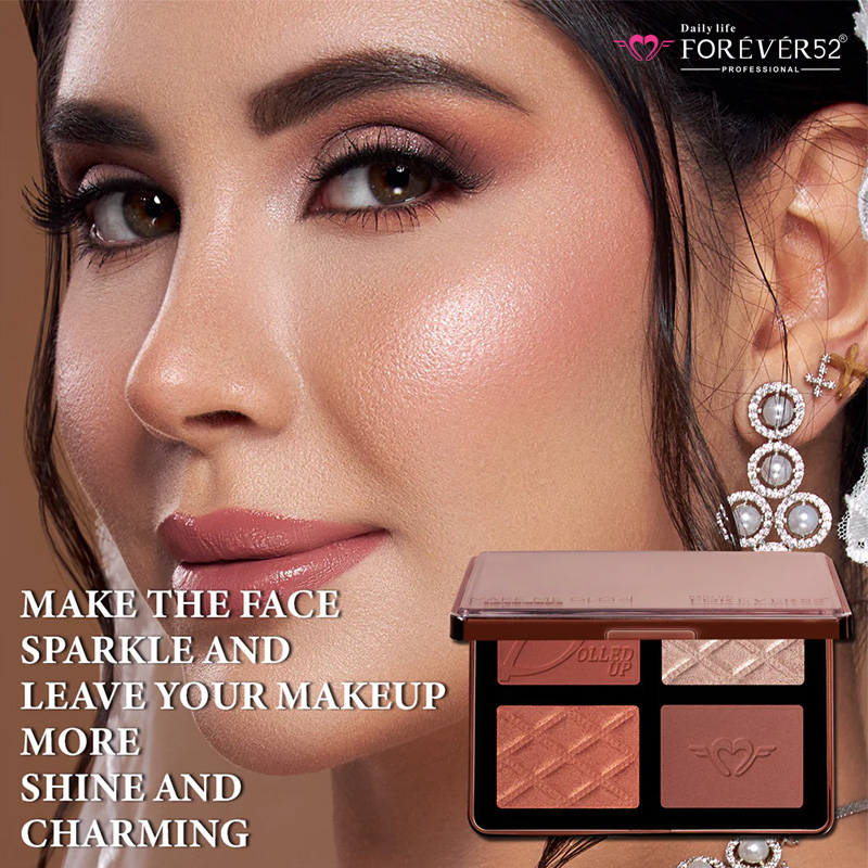 برای افزایش درخشندگی صورتتان٬ از هایلایتر پالت صورت فوراور52 (MMG001) برای استخوان گونه و گوشههای کنار چشم استفاده کنید.