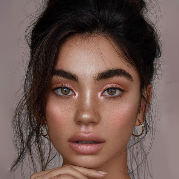 هایلایت استخوان گونه: برای این قسمت باید از براش بادبزنی استفاده کنید که چیشنهاد ما استفاده از براش S1 صاحارا است.
