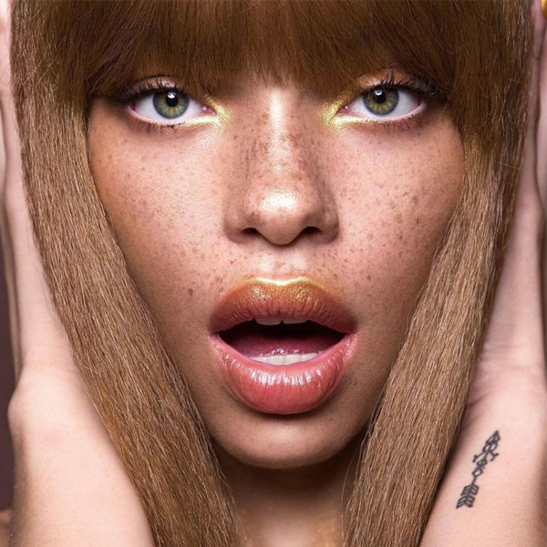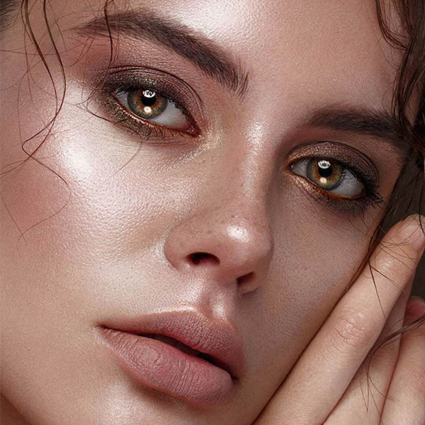 رنگ طلایی: یکی از محبوبت ترین رنگ های هایلایتر است که استفاده زیادی در میکاپ دارد. که در عکس پایین کاربرد ان در گوشه چشم ها، بالای لب و روی بینی مشخص است.