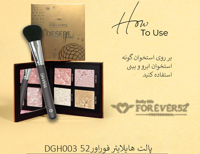 - بهترین زمان برای استفاده از پالت هایلایتر فوراور۵۲، پس از پایان میکاپ و پیش از استفاده از اسپری و پودر فیکس میباشد.