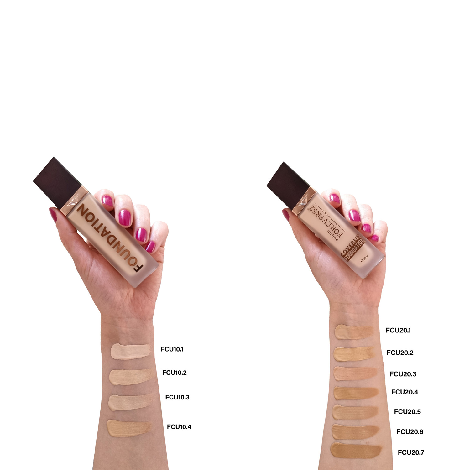کرم پودر کاور آپ فوراور52 (FCU) دارای تنوع رنگی بسیار بالایی است که برای هر تناژ پوست رنگ های تیره و روشن دارد که بنا به سلیقه می توان انتخاب کرد. با توجه به اینکه این کرم پودر به راحتی پخش می شود و جلوه ماتی ایجاد می کند می توان برای انواع پوست استفاده کرد. این کرم پودر بافت سبکی دارد و مقدار کمی از ان پوشش خوبی را ایجاد می کند و موجب سنگینی پوست نمی شود.