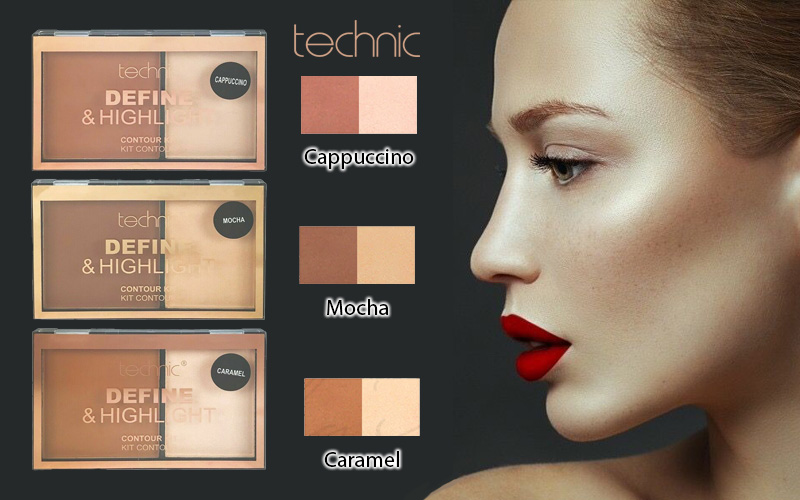 کیت کانتور و هایلایتر تکنیک یک پالت با بافت پودری است که به خوبی بر روی پوست پخش و فید می شود. این پالت فقط یک رنگ کانتور و یک رنگ هایلایتر متناسب با رنگ کانتور دارد که مناسب با رنگ پوست باید انتخاب شود. این پالت برای استفاده شخصی طراحی شده است زیرا که بسیاری از افراد تنها یک رنگ را برای کانتور صورت خود استفاده می کنند.
